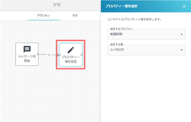 - HubSpot上のプロパティを設定できるアクションです。