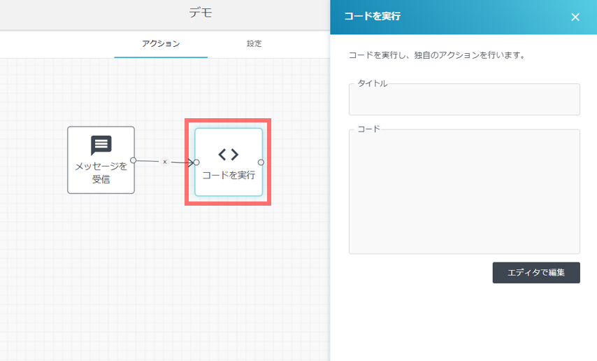 - チャットフローのアクションでは実現できない独自のアクションを実行できます。お客様固有のご要望を実現するために弊社サポートから利用をご案内することがあります。