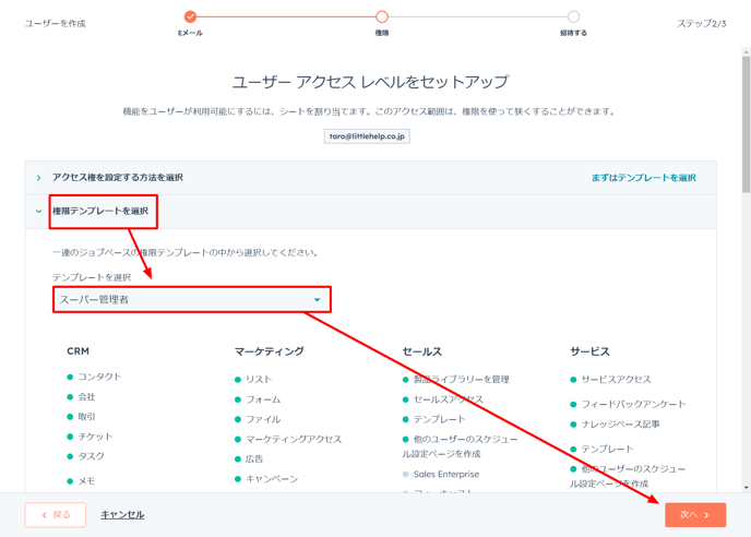 LITTLE HELP CONNECTのテクニカルサポートを招待する場合、HubSpotの様々な設定を確認することが多いため「権限テンプレートを選択>スーパー管理者」を設定いただけますと幸いです。-png.png?width=688&height=1427&name=Settings%20(3)-png.png)