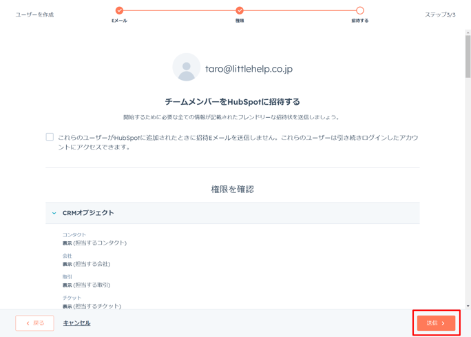 HubSpotにユーザーを招待する方法