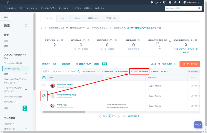 HubSpotに招待したユーザーを削除する方法