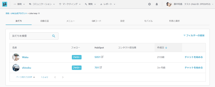 LITTLE HELP CONNECTの「友だち」は、HubSpotのコンタクト情報を参照して表示しております。LITTLE HELP CONNECT側で「友だち」のデータは保有しておりません。