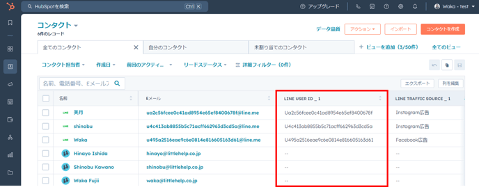 LITTLE HELP CONNECTを利用すると、LINE友だちをHubSpotのコンタクトとして管理することができます(以下、LINEコンタクト)。