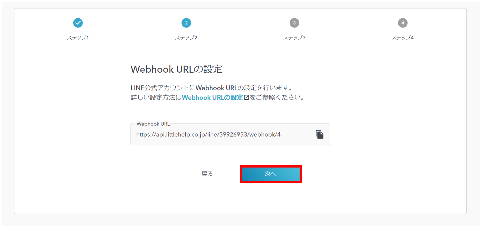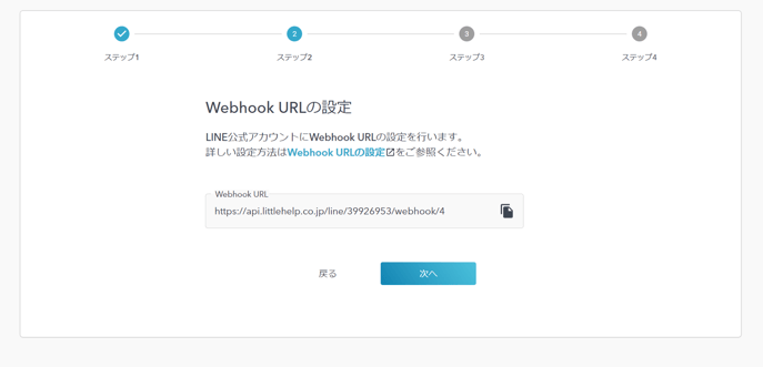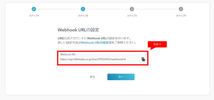 LITTLE HELP CONNECTの管理画面に貼り付けて「次へ」をクリックします。