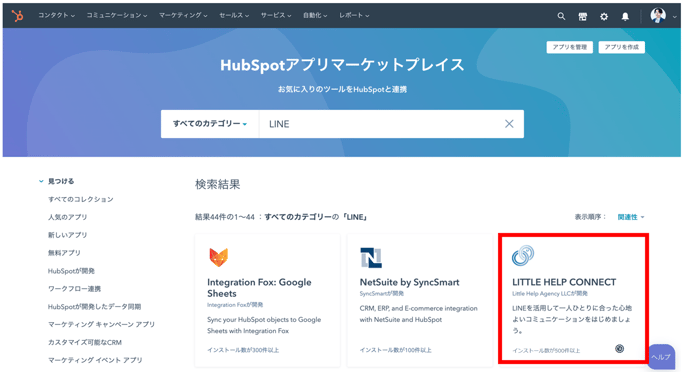 貴社HubSpotにLITTLE HELP CONNECTがインストールされます。
